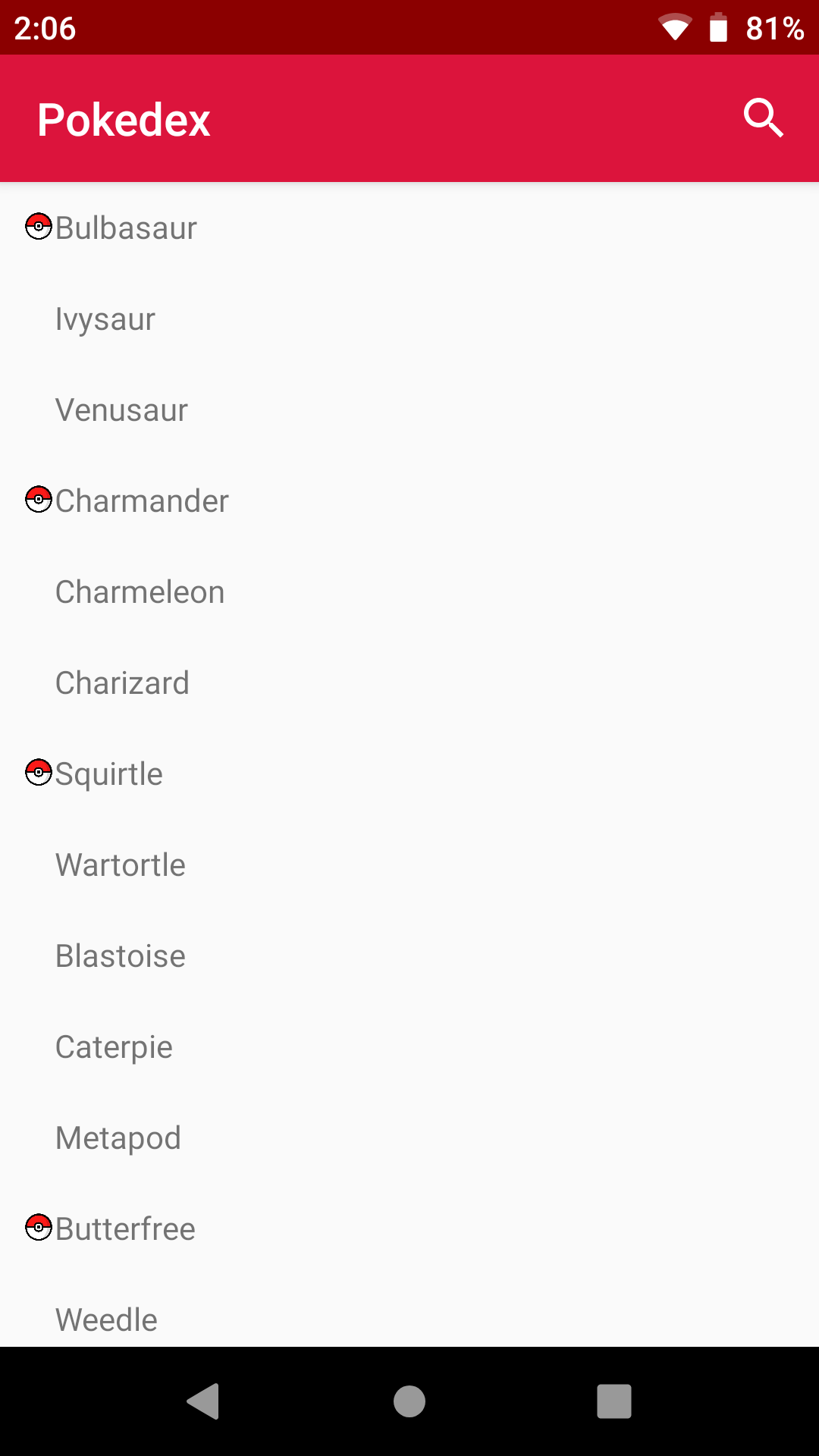 Android application that parses JSON data from a RESTful API to provide information on the original 151 Pokemon.
